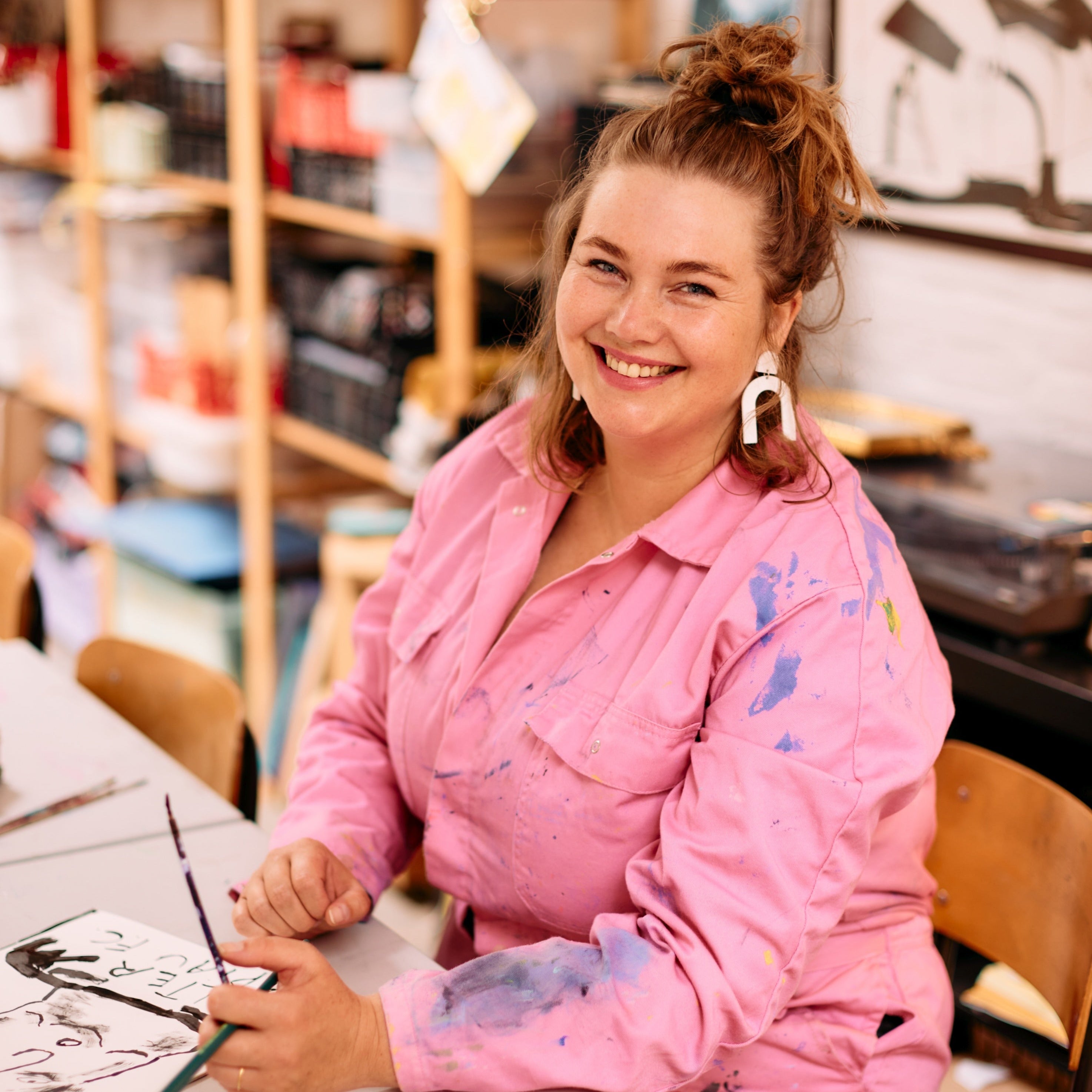 Kelly Hortense van Loon es una ilustradora, profesora y de niña tenía la ambición de convertirse en pirata. Juega con lo sensato y lo sin sentido y no se aleja de algunas travesuras. Esto último se puede ver en su trabajo; letreros brillantes o ilustraciones que te hacen reír. Pintar con tinta, serigrafía o impresión risográfica se encuentran entre sus técnicas favoritas. Con su estilo desenfadado y audaz, secuestra la norma y celebra la banalidad.